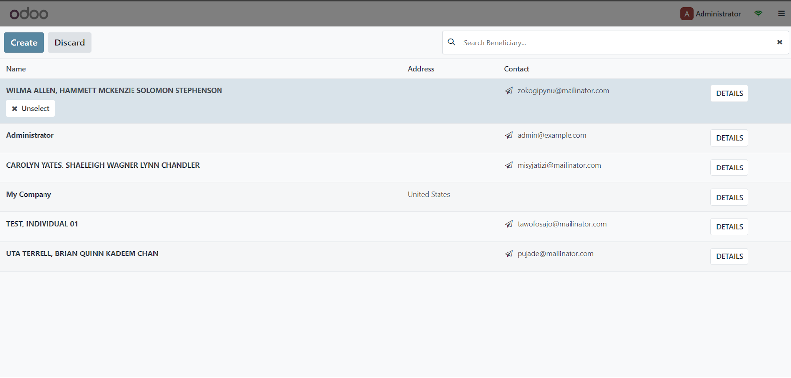 Click on the relevant beneficiary in the displayed list.