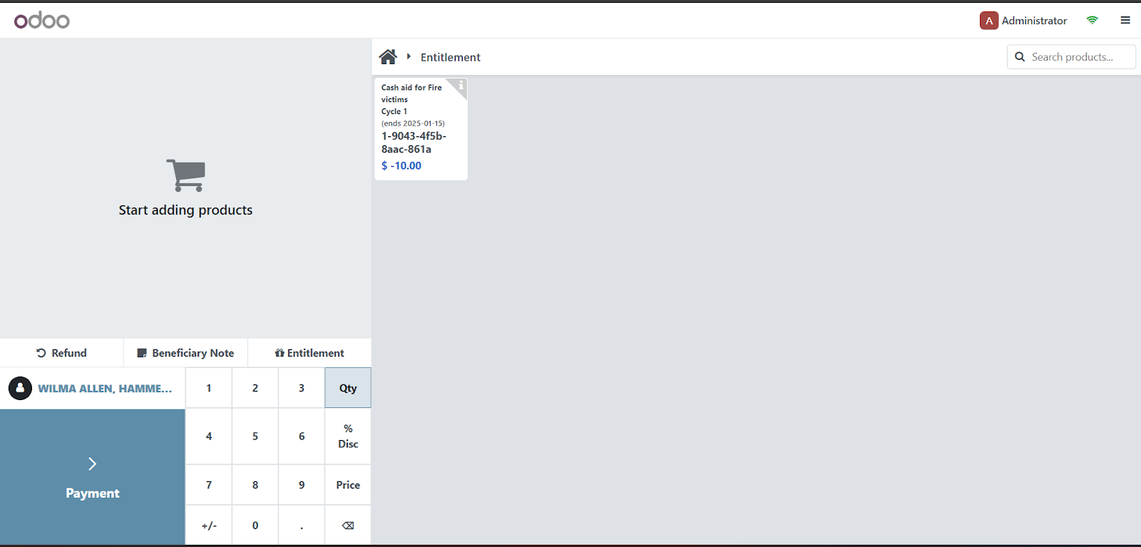 When necessary, it is possible to do refunds for cash entitlements. To start a refund, click on a Point of sale and select a beneficiary. Click on Refund.