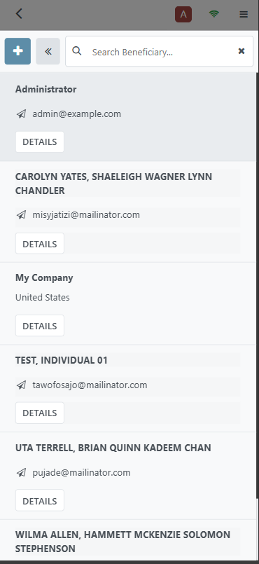 Click on the Beneficiary you wish to transact with.